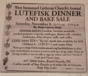 Annual Lutefisk Dinner and Bake Sale