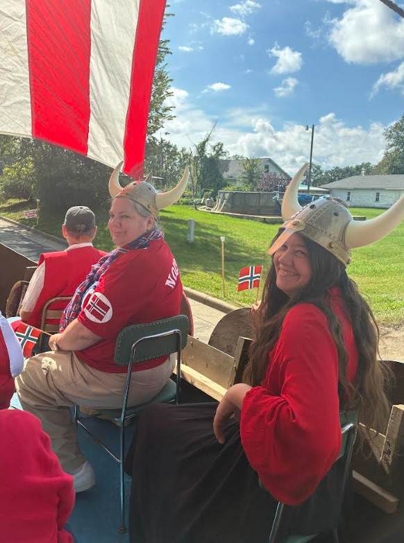 Christian Radich Lodge 5-568 members and their families in the 2025 Cherry Festival parade in Traverse City, Michigan. Representing their proud Norwegian heritage in western Michigan.