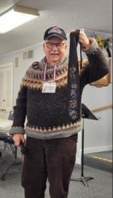 Counselor Bob Giles chose a Rosemaling necktie he purchased at District 5 Convention as his favorite Rosemaling object to show-and-tell at Nordkap’s February gathering at the Swedish Club in Farmington Hills Michigan.